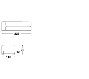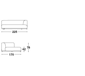 Divano componibile con struttura in multistrato imbottito con gomme di varie densità . Strato superiore in Air Soft ricoperto con falda su tutta la superficie. Strato della seduta superiore in gomma Memory da 3cm. Seduta con cinghie elastiche, telaio in legno effetto metallo verniciato.