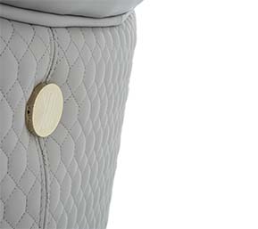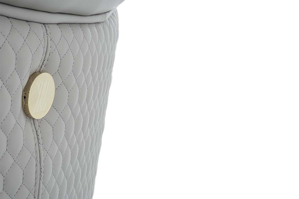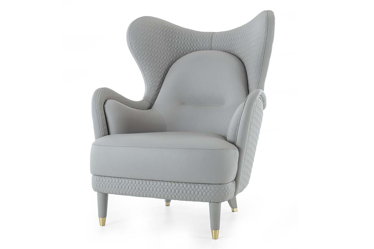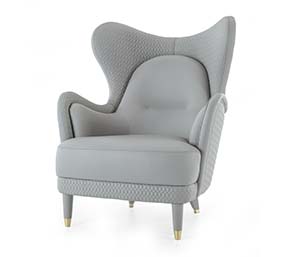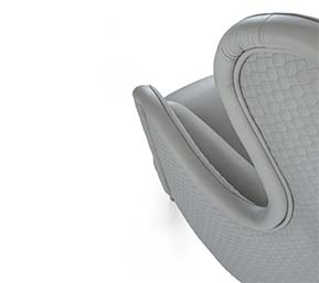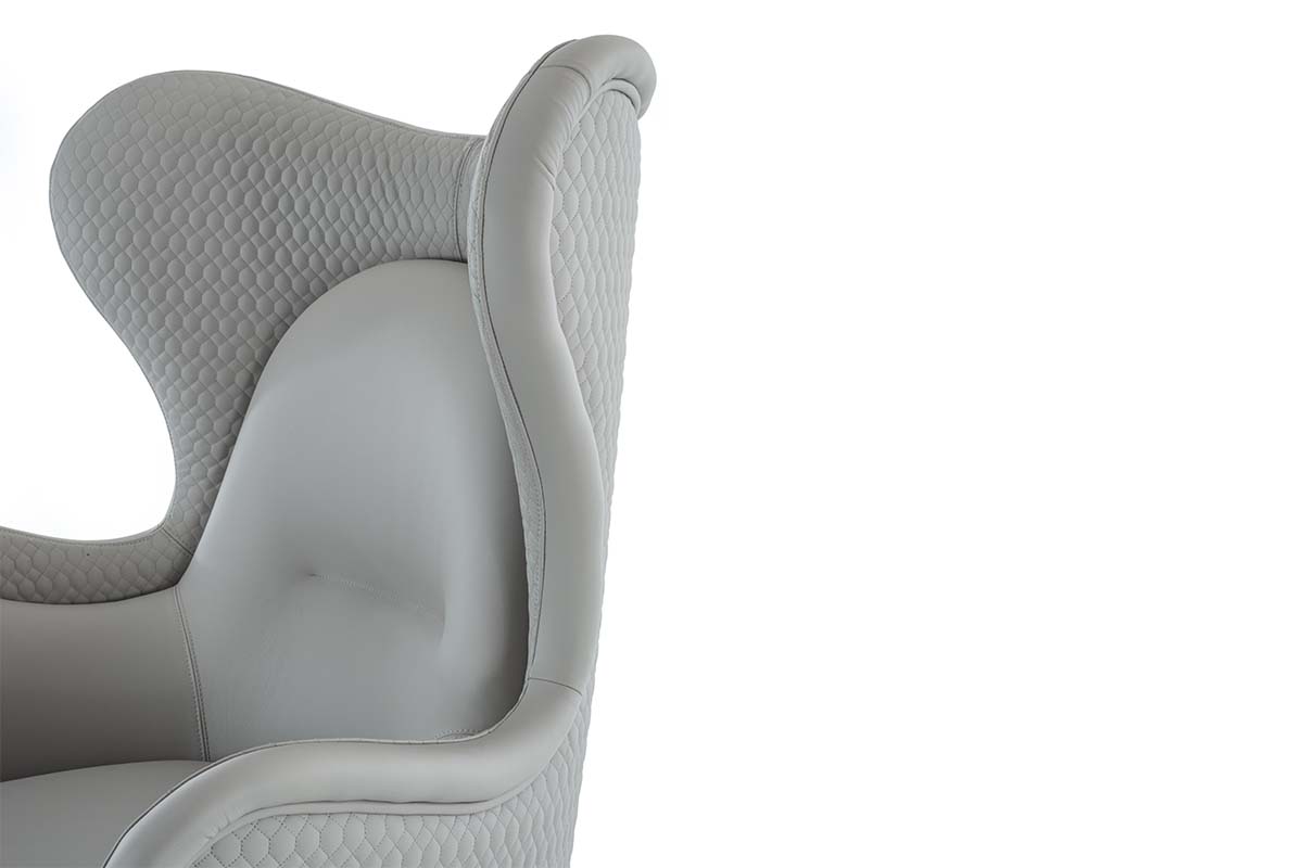 Struttura realizzata in compensato di legno curvo. Completamente rivestita in tessuto o pelle. Piedini con parte terminale in metallo.