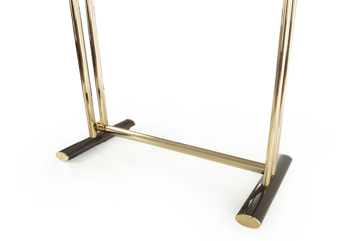 Struttura in tubolare ellittico in metallo. Ripiani in compensato laccato, con profili ellittici in legno di canaletto impiallacciato. Questo articolo non รจ disponibile in essenza Mirto.