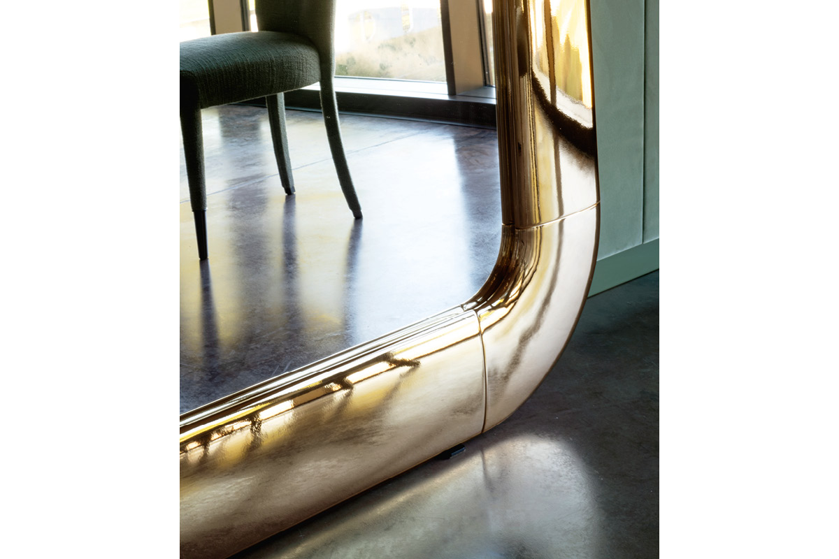 Telaio in legno verniciato con effetto metallo. Specchio filo lucido.