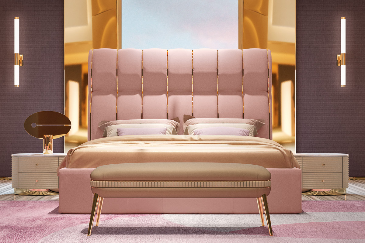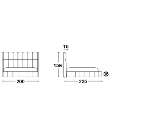 Struttura realizzata in compensato, interamente rivestita in tessuto o pelle con inserti in pelle effetto cromo sulla testata.