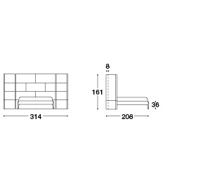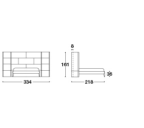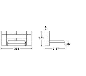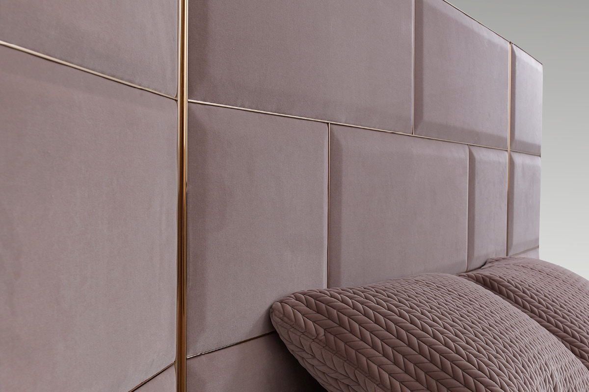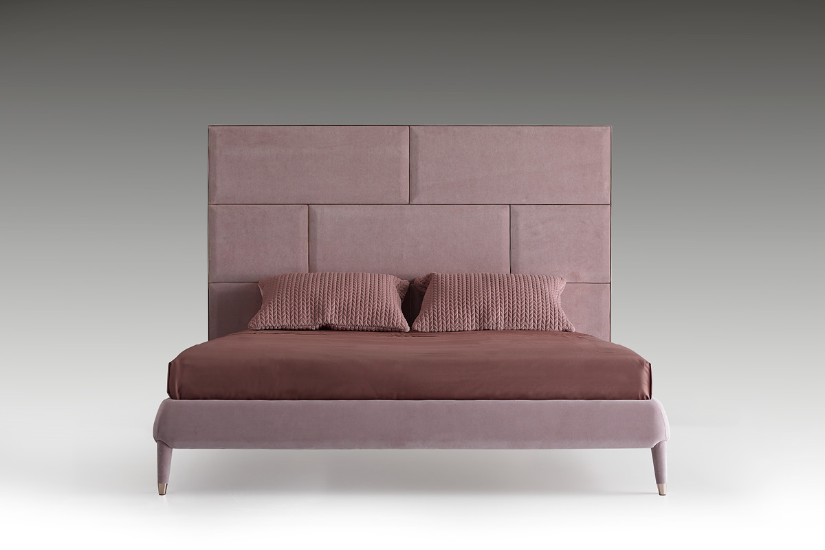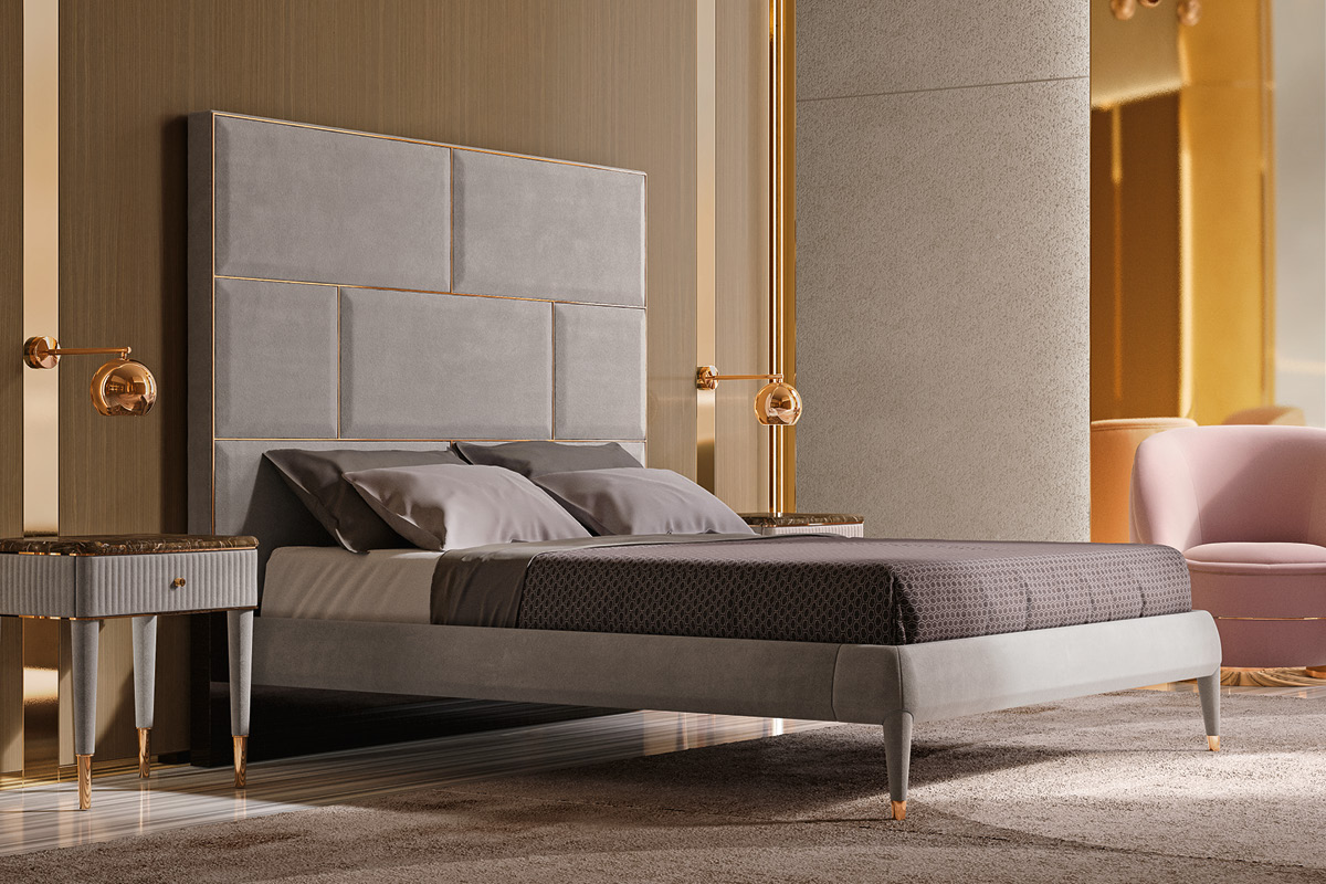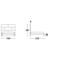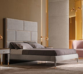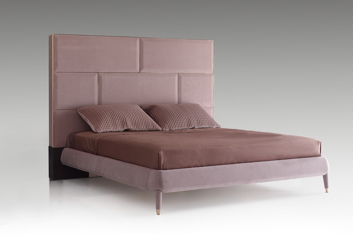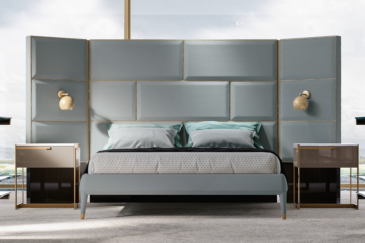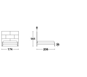 Struttura in compensato di legno con inserimento di pannelli frontali e posteriori in compensato di legno laccati o in essenza nella parte inferiore e imbottita in tessuto o pelle nella parte superiore. Profili in metallo, con cerniere per movimento pannelli laterali.